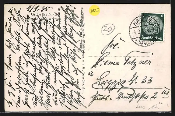 gelaufen 1935, rückseitig Klebe- und Papierreste, guter Zustand