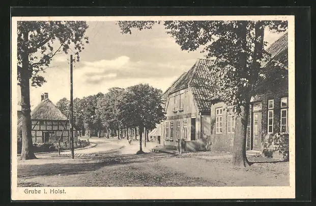 AK Grube i. Holst., Strassenpartie mit Gebäudeansicht
