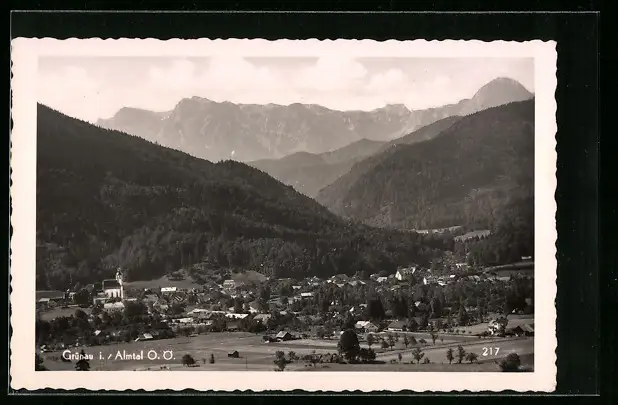AK Grünau /Almtal, Gesamtansicht aus der Vogelschau