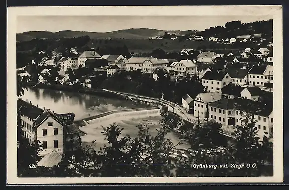 AK Grünburg a. d. Steyr, Blick über die Dächer