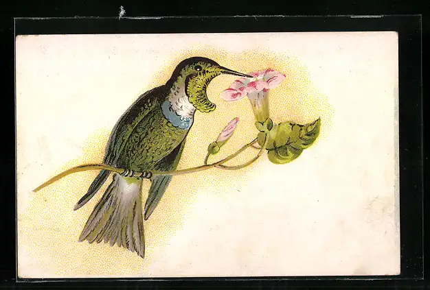 AK Grüner Vogel mit einer kelchförmigen Blüte