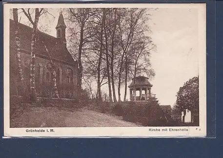 AK Grünheide i.M. Kirche mit Ehrenhalle 1931