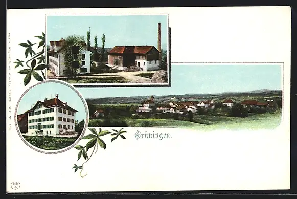 AK Grüningen, Fabrik, Ortsansicht aus der Vogelschau