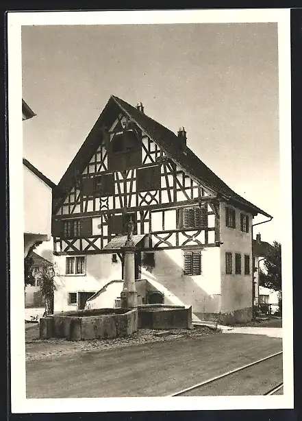 AK Grüningen, Riegelhaus und Stadtbrunnen