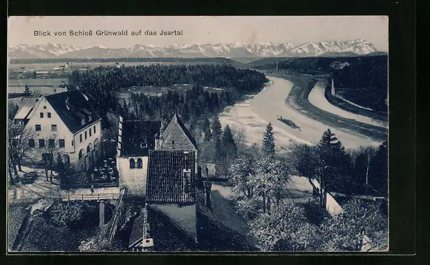 AK Grünwald, Blick vom Schloss auf das Isartal