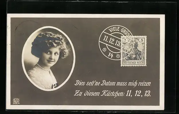 AK Grüsse zum 11.12.13, Frauenportrait