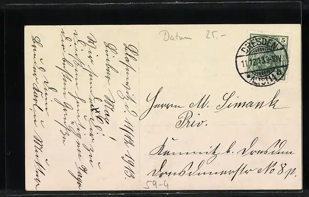 alte Ansichtskarte, gelaufen 1913, Stempelspur, guter Zustand