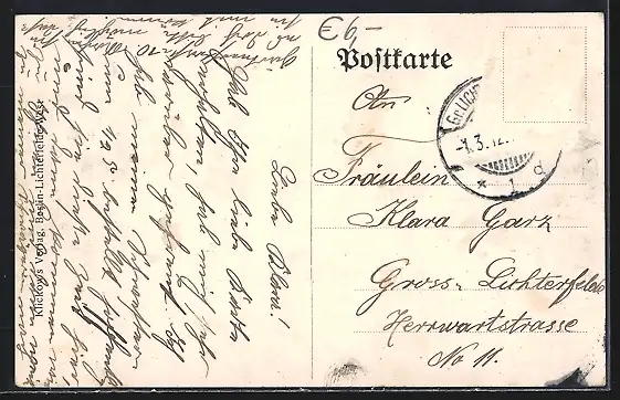 alte Ansichtskarte, gelaufen, Briefmarke entfernt, guter Zustand