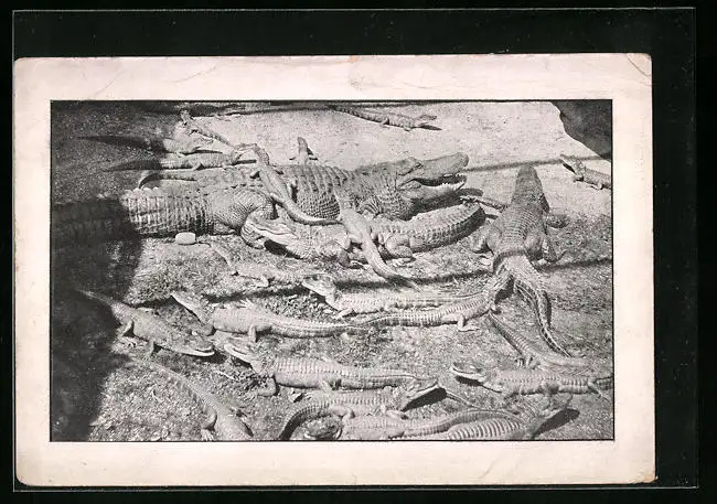 AK Gruppe von Krokodilen auf sandigem Boden