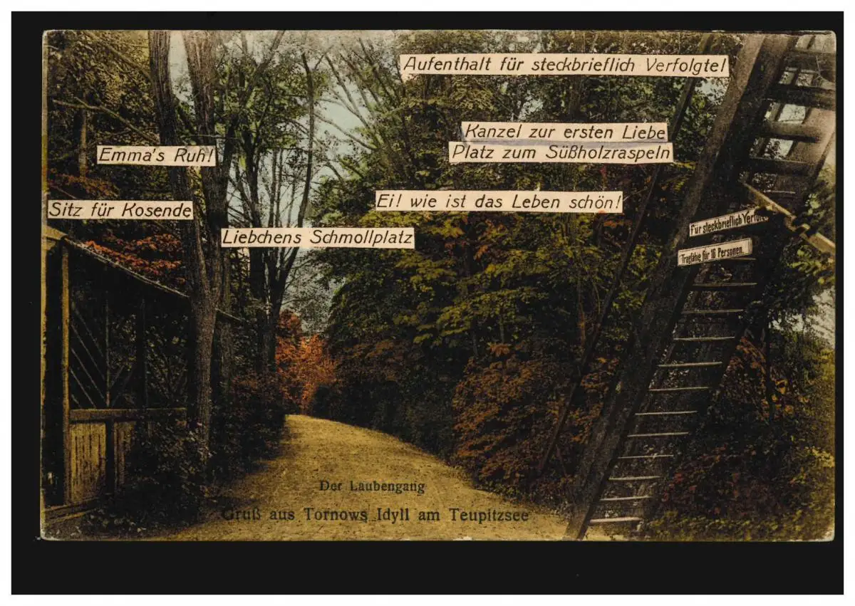 AK Gruß aus Tornows Idyll am Teupitzsee: Der Laubengang, BERLIN N 54.r 15.8.1927