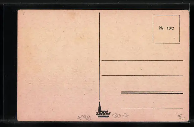 Personenbezogene Daten auf der Rückseite der Karte wurden durch blauen Textmarker unkenntlich gemacht. Die blauen Stellen sind auf die Vorderseite durchgeweicht und wirken sich negativ auf das Postkartenfoto aus