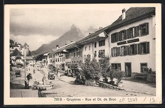 AK Gruyères, Rue et Dt. de Broc, Ortspartie