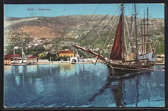 AK Gruz / Gravosa, Blick zum Ort, Segelboote