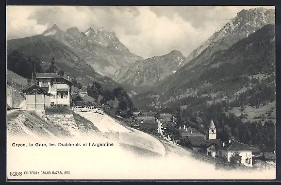 AK Gryon, la Gare, les Diablerets et l`Argentine, Bahnhof