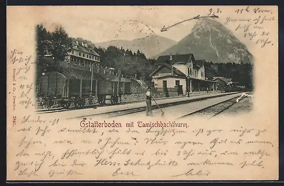 AK Gstatterboden, Bahnhof mit Tamischbachthurm