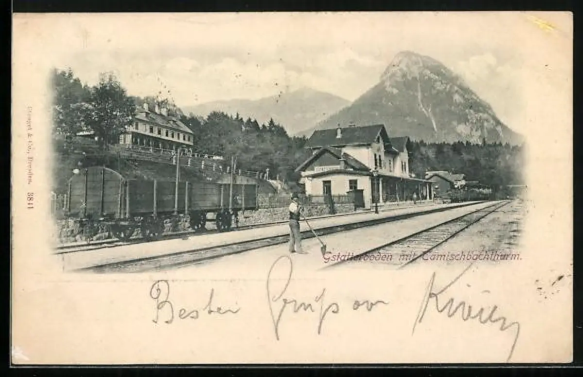 AK Gstatterboden, Bahnhof mit Tamischbachthurm