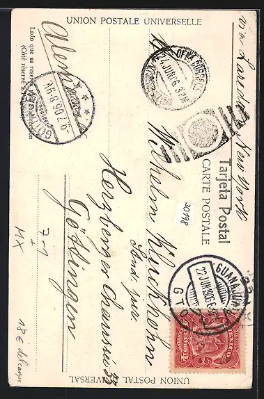 gelaufen 1906, Eckknicke li. und re. oben, Abriebspur re. oben, guter Zustand