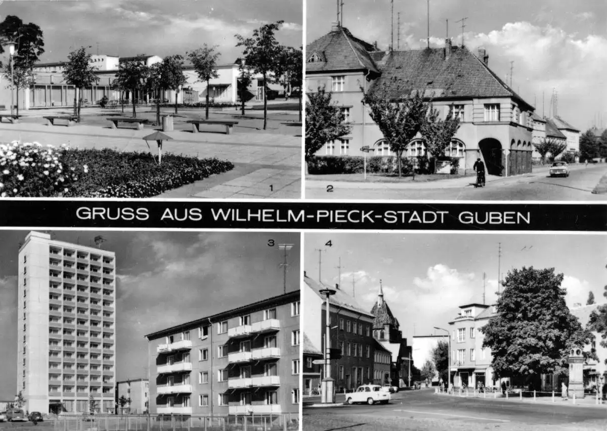 postalisch gelaufen, gestempelt: Wilhelm-Pieck-Stadt Guben 1, unleserlich