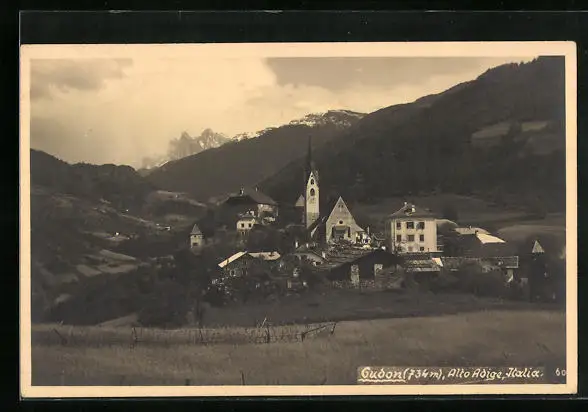 AK Gudon, Totalansicht mit Gebirgspanorama
