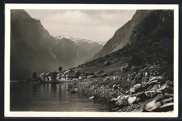 AK Gudvangen, Teilansicht des Ortes