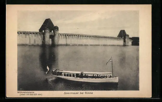 AK Günne, Möhnetalsperre, Sperrmauer mit Boot