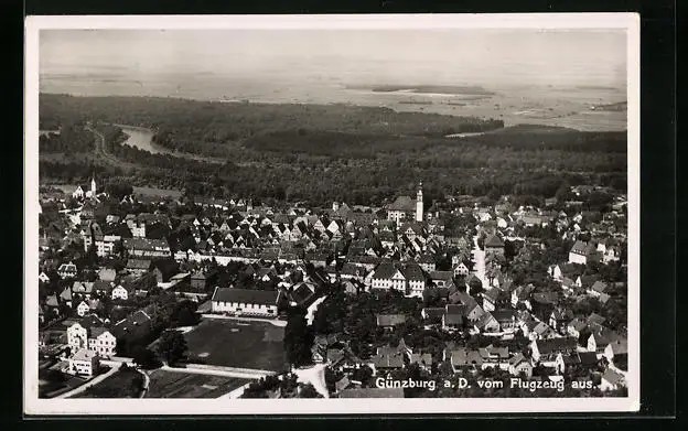 AK Günzburg a. D., Fliegeraufnahme des Ortes