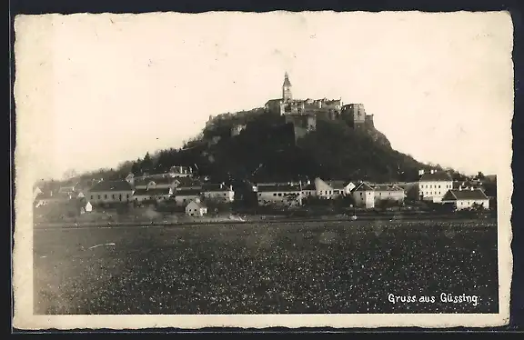 AK Güssing, Ortsansicht mit Blick zur Burg