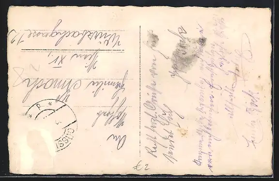 alte Ansichtskarte, gelaufen, Briefmarke entfernt, rückseitig Oberflächenschaden, guter Zustand