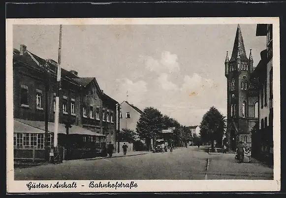 AK Güsten /Anhalt, Bahnhofstrasse mit Shell-Tankstelle