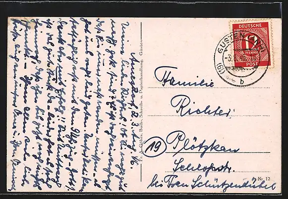 alte Ansichtskarte, gelaufen 1946, guter Zustand