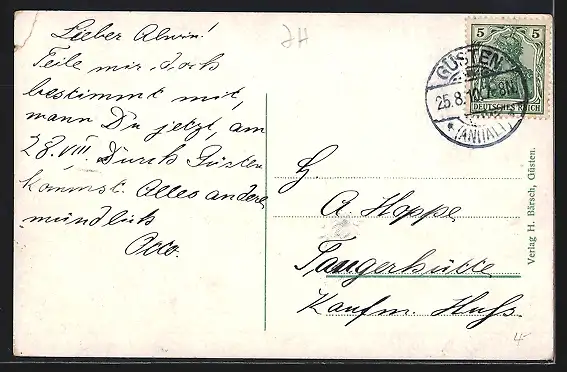 gelaufen 1910, Eckknick oben rechts, guter Zustand