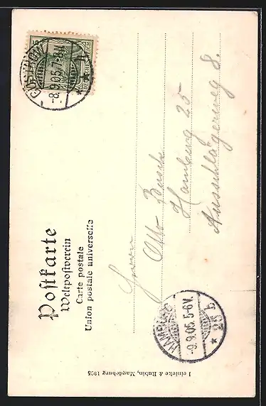 alte Ansichtskarte, gelaufen 1905, guter Zustand