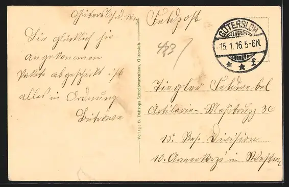 alte Ansichtskarte, gelaufen 1916, Einriss unten, guter Zustand