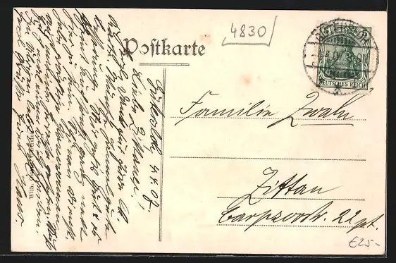 alte Ansichtskarte, gelaufen 1907, guter Zustand