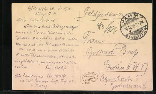 alte Ansichtskarte, gelaufen 1916 als Feldpost, guter Zustand