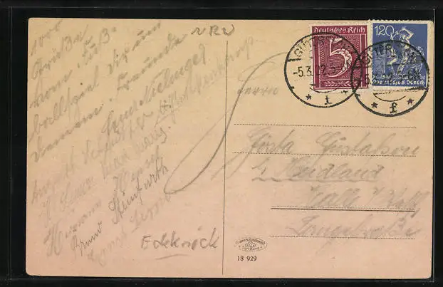 alte Ansichtskarte, gelaufen 1922, Eckknick unten li., guter Zustand