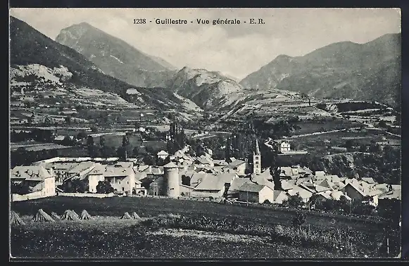 AK Guillestre, Vue generale mit Kirche und Bergblick