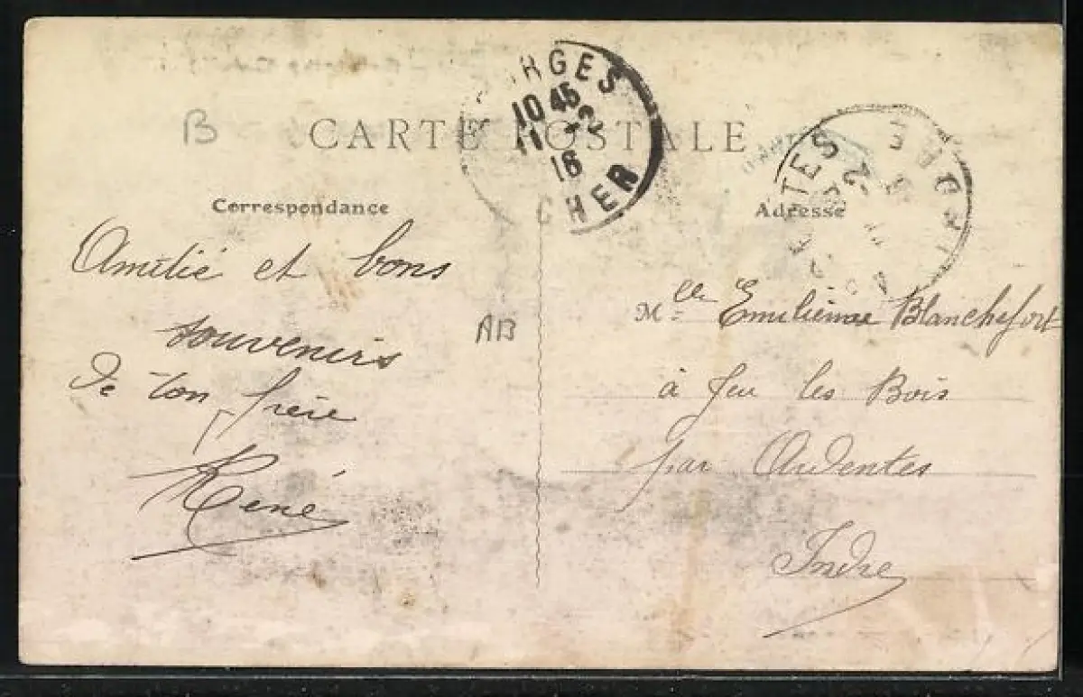 alte Ansichtskarte, gelaufen 1916, Stempelspur, rückseitig Oberflächenschaden, guter Zustand