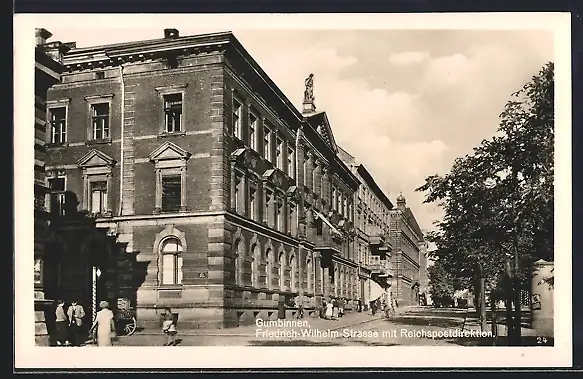 AK Gumbinnen, Friedrich-Wilhelm-Strasse mit Reichspostdirektion