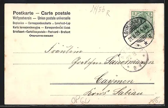 alte Ansichtskarte, gelaufen 1903, guter Zustand