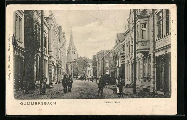 AK Gummersbach, Kaiserstrasse mit Passanten