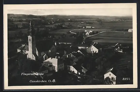 AK Gunskirchen /O.-Ö., Teilansicht mit Kirche, Fliegeraufnahme