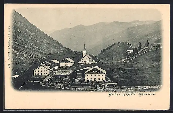 AK Gurgl, Ortspanorama mit Kirche