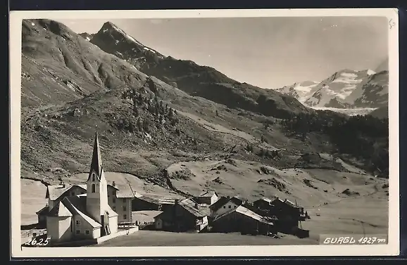 AK Gurgl, Teilansicht mit Kirche und Berglandschaft
