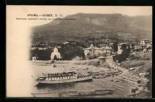 AK Gursuf /Krim, Ortsansicht mit Schiffsanleger