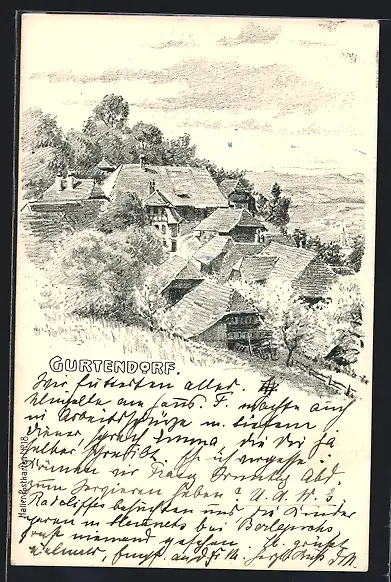 AK Gurtendorf, Ortspartie aus der Vogelschau