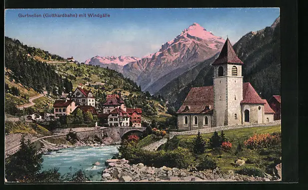 AK Gurtnellen, Ortsansicht mit Windgälle