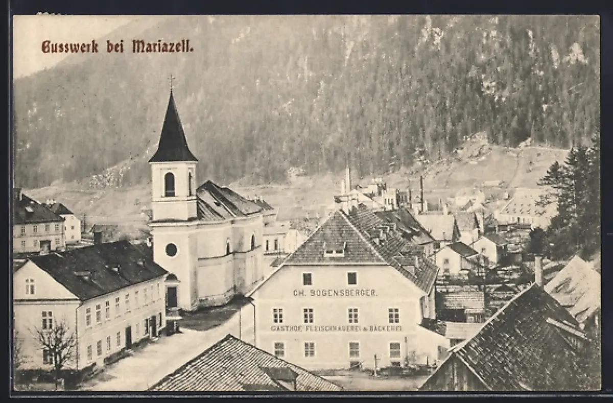 AK Gusswerk, Ortsansicht mit Gasthaus