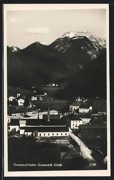 AK Gusswerk /Stmk., Ortsansicht gegen die Berge
