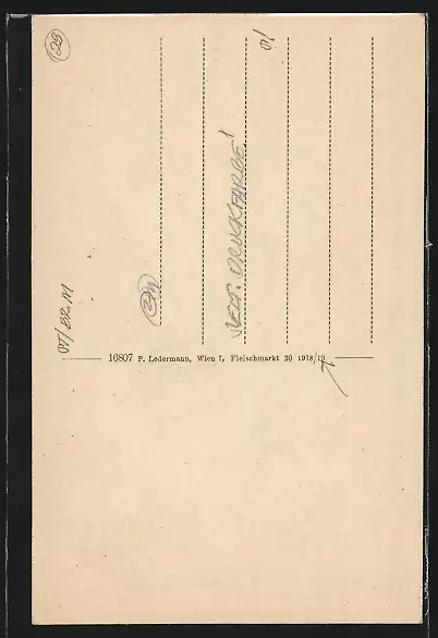 Personenbezogene Daten auf der Rückseite der Karte wurden durch blauen Textmarker unkenntlich gemacht. Die blauen Stellen sind auf die Vorderseite durchgeweicht und wirken sich negativ auf das Postkartenfoto aus